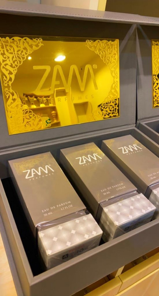 بوكس مصنوع من افخر انواع الجلد يحتوي على ثلاثة عطور فرنسية من ماركة زام بارفيوم عالية الجودة والتميز