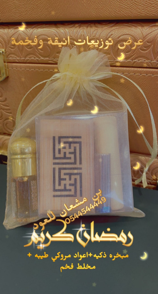 توزيعات انيق وجميله مبخرة ذكيه صغيرة ذات جودة مميزة واعواد مروكي جودة مميزة و مقلمه صغيرة لحفظ الاعواد و ربع تولة مخلط ذا جودة مميزة مجموعه في شيفون انيق وجميل